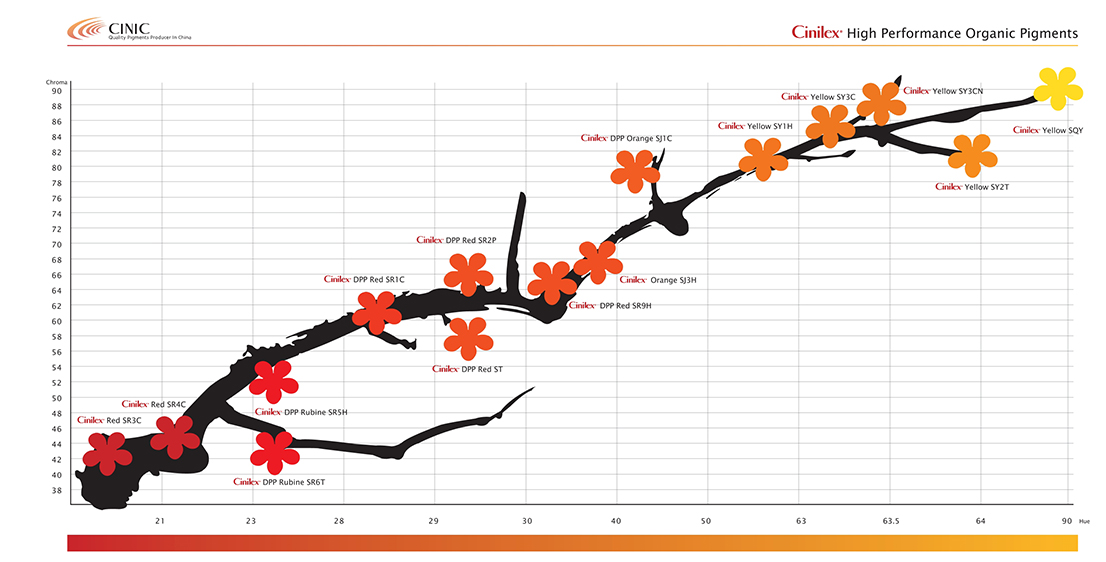 Our Cinilex® portfolio of high performance organic pigments consists of a range of high quality and highly durable products for use in a wide range of coating and paint applications. This focused range are characterized by high chroma, high color strength and high opacity in conjunction with outstanding weather fastness and light fastness. Both opaque and transparent grades are available for the majority of the chemistries in the range.